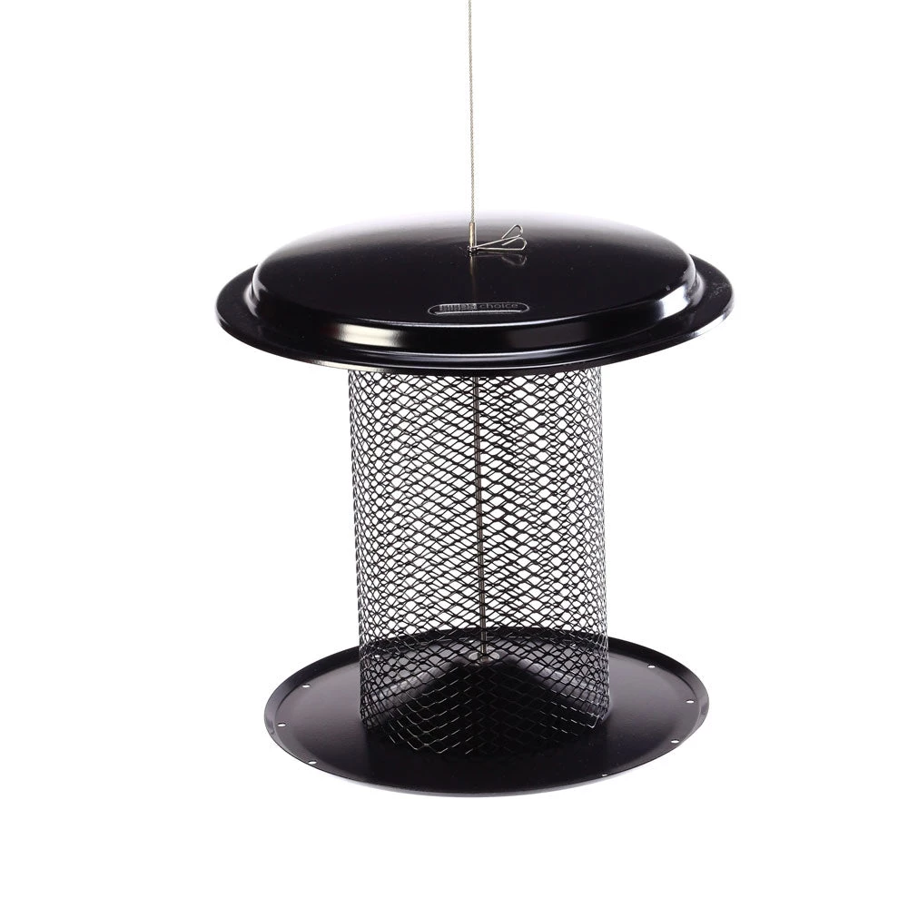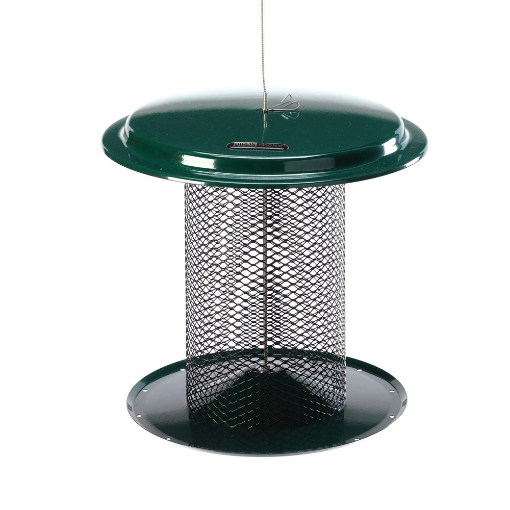 These feeders feature stainless steel screens, all steel construction and a polyester-powder coated top and bottom. The extremely durable construction is meant to be used in any weather. The cylindrical design holds up to 5 quarts of seed and has drainage holes in the base to help keep seed dry and healthy. It is easy to refill and clean and comes complete with hanger rod. Dispenses sunflower, peanuts or a blend of seed. Available in 3 color choices – Black, Red and Green.  Features: