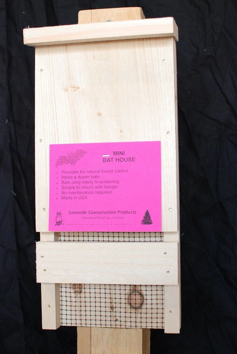 The Coveside Bat House Kit makes an excellent gift. This top seller features a single chamber that will hold up to 20 bats. Similar in design to the “bat”chelor pad, but smaller. Features an extended landing pad and a back covered with screening to provide bats with an ideal foothold. Also includes an echo-location slot to help the bats locate the cavity. Designed as an educational tool for youngsters and adults alike. Comes with easy-to-follow instructions and information about bats. Hand crafted in Maine of sustainably grown Eastern White Pine.