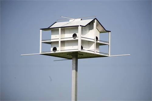 The Amish community knows martin housing and the Hilltop Trendsetter 8 System is a superb all-in-one package made to the highest standards. Unique in design this system add lots of useful and beneficial features for the the purple martin. Martins will thank you with their chatter, while occupying this aluminum house with insulated compartment ceilings and an insulated roof.Â