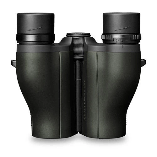 This little wonder comes courtesy of forward-thinking engineering and on-the-go tactics. The reverse porro prism design uses high quality glass and fully multi-coated optics to render images crisp and bright with a wide field of view. That makes quick work of scanning any landscape a given with the 10×26 Vanquish binocular. Weighing in at merely 12.7 ounces, and competitively priced, this compact performer delivers in more ways than one.